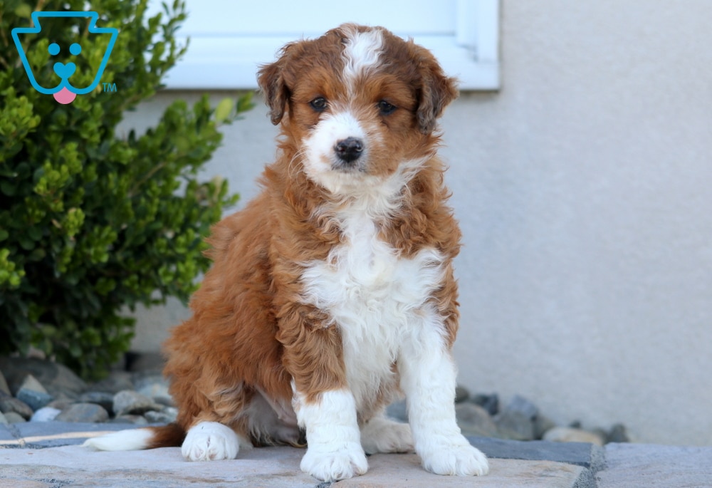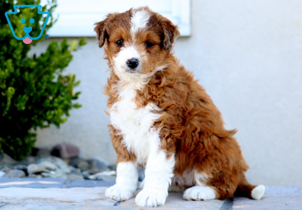 Hazel is a gorgeous Mini Aussiedoodle puppy with a bubbly personality and a heart full of love! Raised right alongside children, she’s incredibly social, affectionate, and always ready to be part of the fun. With her soft, wavy coat and bright, curious eyes, this pooch is as stunning as she is sweet. She is vet checked, vaccinated, wormed, and comes with a 1 year genetic health guarantee that is provided by the breeder. Her parents are Autumn (Australian Shepherd – 35lbs) & a Mini Poodle (15lbs). If you’re looking for a cheerful, well-socialized puppy who will bring joy, laughter, and endless cuddles into your home, Hazel is the perfect fit. She’s ready to become your loyal little companion and best friend!