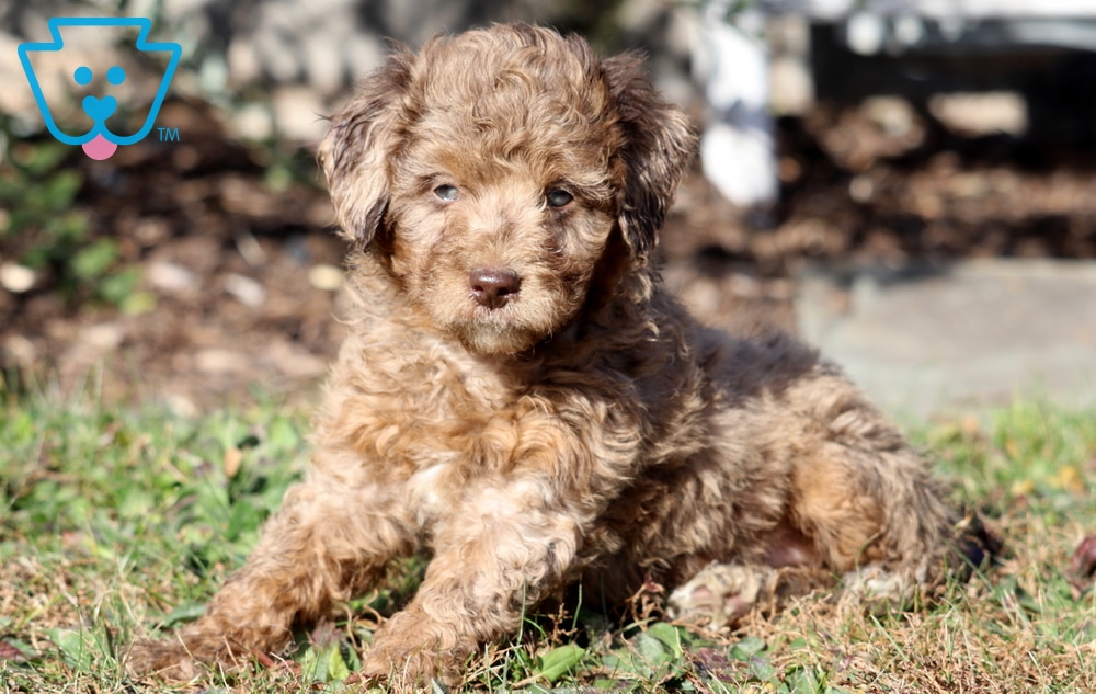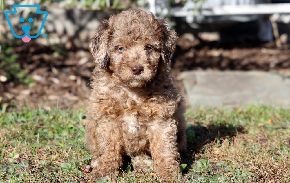 Paige is a sweet Mini Aussiedoodle with a heart as big as her playful spirit! She’s incredibly social and loves making new friends — both human and furry alike. Her favorite thing in the world is spending time with kids. She is vet checked, vaccinated, wormed, plus the breeder provides a 1 year genetic health guarantee. Her momma is a Mini Aussiedoodle (Lilly – 15lbs.) & daddy is a Mini Poodle (Rascal – 15-20lbs.). Paige’s gentle, loving nature and fun personality make her the perfect companion for a families.