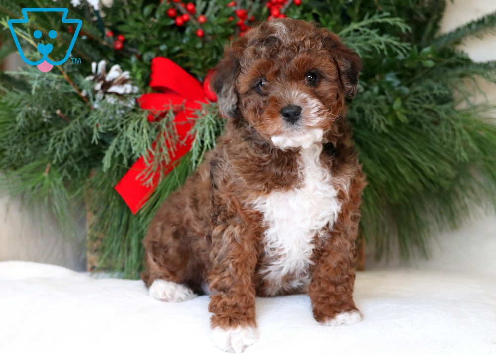 Zoey is an adorable Mini Aussiedoodle puppy with a happy personality and a heart full of love. This sweet girl has been raised in the home, giving her plenty of daily interaction, attention, and cuddles. She’s very social, loves being around people, and is always eager to make a new friend! This pooch is vet checked, vaccinated, wormed, and comes with a 1 year genetic health guarantee that is provided by the breeder. Her parents are Daisy (Mini Aussiedoodle – 25lbs) & Rover (Mini Poodle – 12lbs). If you’re looking for a loving companion with a friendly personality and a great start to life, Zoey is your girl!
