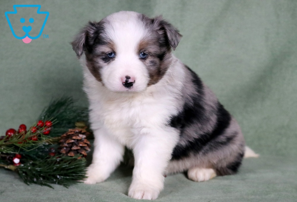 Charlie is a sweet and spirited Mini Australian Shepherd puppy with a friendly personality that shines. He is very social and has been raised around children, so he loves being part of the fun. This cutie is vet checked, vaccinated, wormed, and comes with a 1 year genetic health guarantee that is provided by the breeder. His momma is a Mini Australian Shepherd (Lucky) & daddy is a Toy Australian Shepherd. Charlie enjoys interacting with people, playing, and soaking up attention. If you’re searching for a happy, people-loving pup to complete your home, this pooch could be the perfect fit!