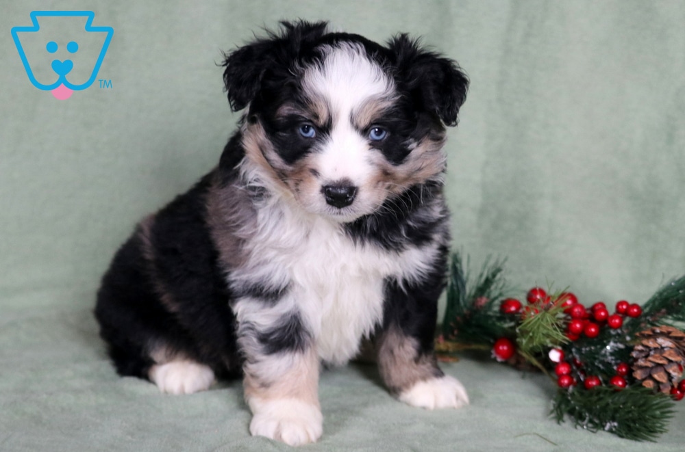 Cooper is a sweet and spirited Mini Australian Shepherd puppy with a friendly personality that shines. He is very social and has been raised around children, so he loves being part of the fun. This cutie is vet checked, vaccinated, wormed, and comes with a 1 year genetic health guarantee that is provided by the breeder. His momma is a Mini Australian Shepherd (Lucky) & daddy is a Toy Australian Shepherd. Cooper enjoys interacting with people, playing, and soaking up attention. If you’re searching for a happy, people-loving pup to complete your home, this pooch could be the perfect fit!