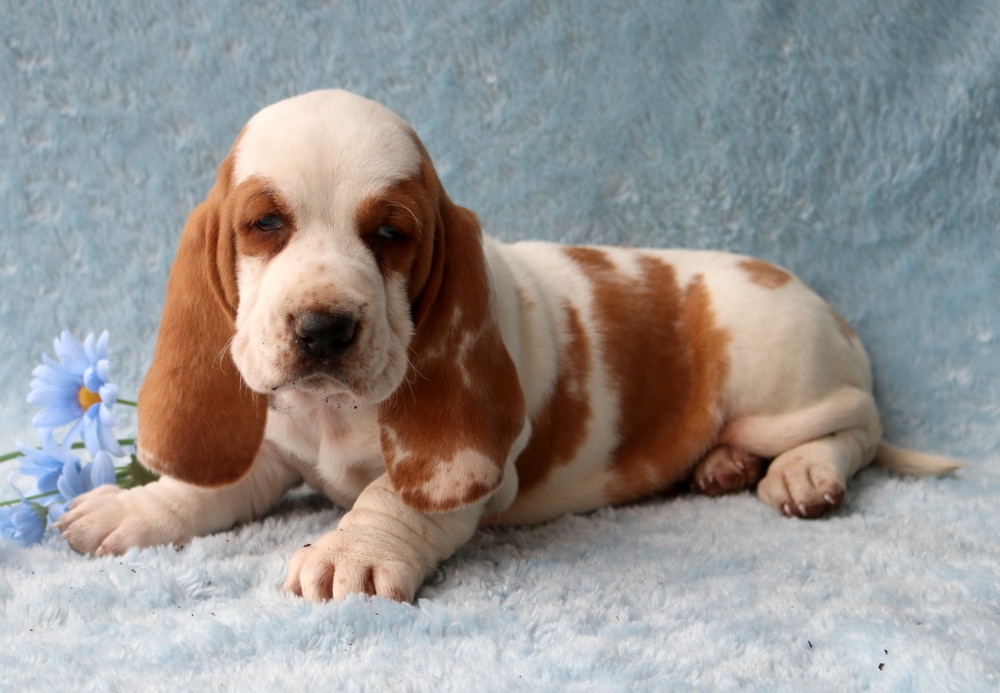Buddy is a lovable Basset Hound puppy with a gentle, easygoing personality and those classic floppy ears everyone adores. He’s very social and has been raised around children, making him comfortable with family activity, playful moments, and lots of affection. Buddy enjoys being part of the action but is just as happy soaking up attention and cuddles. He is vet checked, vaccinated, wormed, and comes with a 1 year genetic health guarantee that is provided by the breeder. His parents are Tina (40lbs) & Dozer. If you’re looking for a friendly, kid-loving puppy with a calm and loving nature, Buddy is ready to fit right into your home.