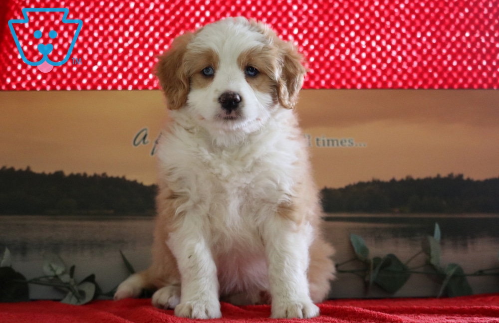 Peach is a charming Mini Bernedoodle with a heart as big as her fluffy paws. Friendly and outgoing, she absolutely loves being around people—especially kids! She is vet checked, vaccinated, wormed, plus the breeder provides a 1 year genetic health guarantee. Her momma is a Mini Bernedoodle (Rosie – 28lbs.) & daddy is a Mini Bernedoodle (Checkers – 38lbs.). Peach is always eager to make new friends and share her joyful energy with everyone she meets.