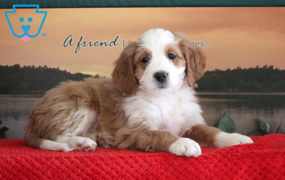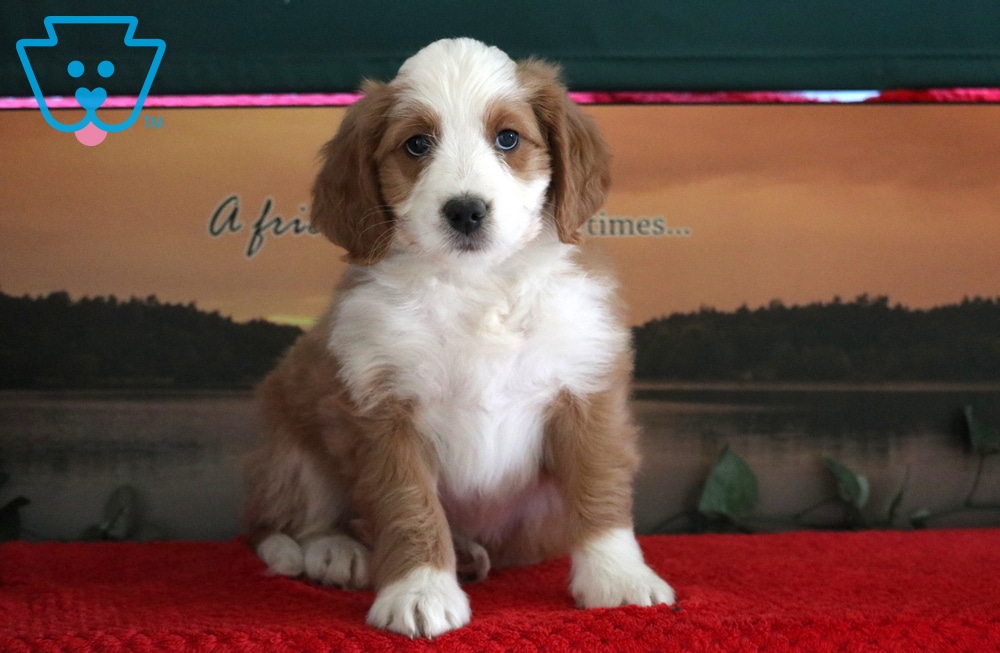 Meet Spike, a sweet and snuggly Mini Bernedoodle with a heart as big as his fluffy curls! He loves spending time with kids—whether it’s chasing a ball in the yard, joining in on playtime adventures, or curling up for cuddles afterward. He is vet checked, vaccinated, wormed, plus the breeder provides a 1 year genetic health guarantee. His momma is a Mini Bernedoodle (Rosie – 28lbs.) & daddy is a Mini Bernedoodle (Checkers – 38lbs.). Spike’s gentle, affectionate nature makes him the perfect family companion.