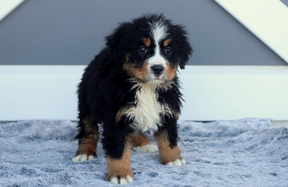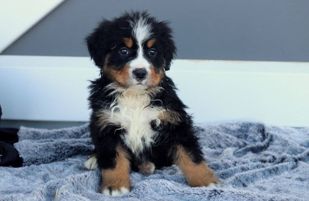 Maggie is a sweet and gentle Bernese Mountain Dog with a heart as big as her beautiful tri-colored coat. She’s wonderfully social, always eager to make new friends, and absolutely lights up when she’s around children. This cutie is AKC registered, vet checked, vaccinated, wormed, plus the breeder provides a 1 year genetic health guarantee. Her parents are Kayla (90-100lbs.) & Reggie (110lbs.). Maggie makes the perfect companion for a family looking for a loyal and playful best friend.
