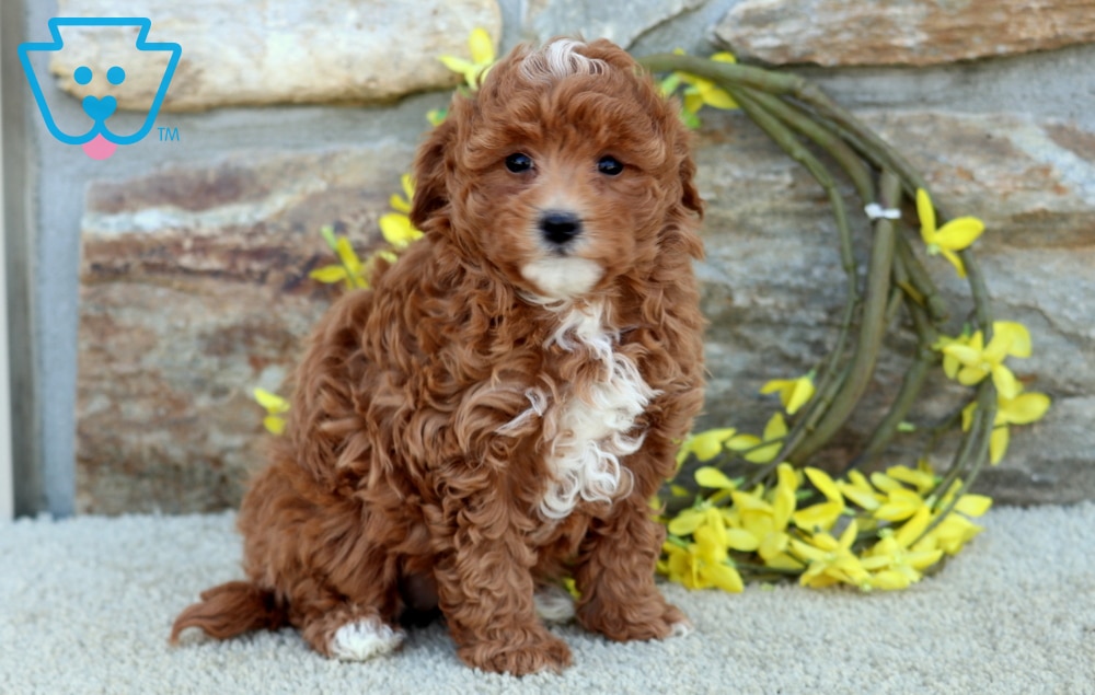 Full of personality, Minnie is a social Poodle mix who thrives around families and kids. Her gentle nature and playful spirit make her the perfect companion for family fun. Minnie is vet checked, vaccinated, wormed, plus the breeder provides a 1 year genetic health guarantee. Her momma is a Bichon/Mlatese/Poodle Mix (Cutie – 12lbs.) & daddy is a Mini Poodle (Rusty Red – 12lbs.). She’s the kind of dog who turns every moment into a happy one.