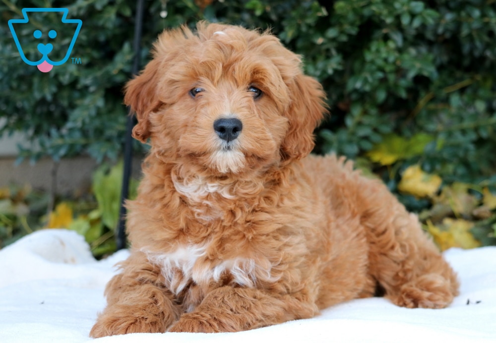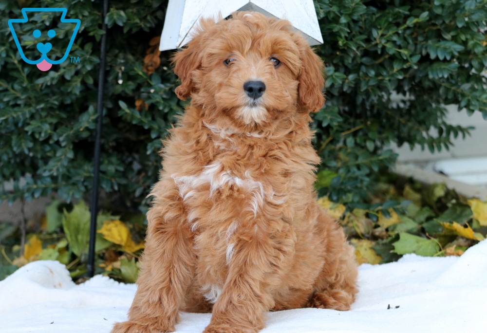 Domino is an adorable Mini Goldendoodle puppy with a heart full of love and a tail that never stops wagging! He’s super social and loves everyone he meets. Domino is well-socialized, raised with children, and ready to bring joy to his forever home. This cutie is vet checked, vaccinated, wormed, and comes with a 1 year genetic health guarantee that is provided by the breeder. His momma is Sunshine (Mini Goldendoodle – 25lbs) & daddy is a Mini Poodle. If you’re looking for a friendly puppy who will be your loyal companion, Domino is the one for you!
