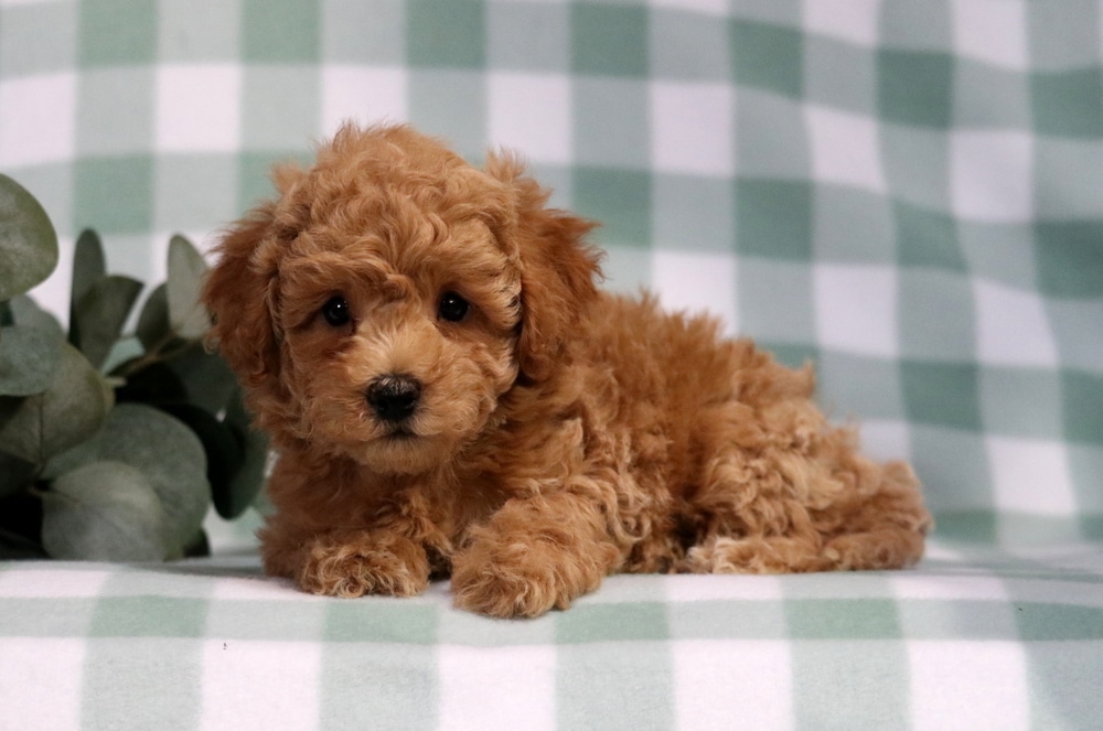 Kendrick is an outstanding Bichpoo with a joyful, loving personality. He is incredibly social and thrives on companionship, especially with children. This cutie is vet checked, vaccinated, wormed, plus the breeder provides a 2 year genetic health guarantee. His momma is a Bichon (Olena – 10lbs.) & daddy is a Mini Poodle (Teddy – 11lbs.). Kendrick’s friendly nature and happy spirit make him a delight to be around.