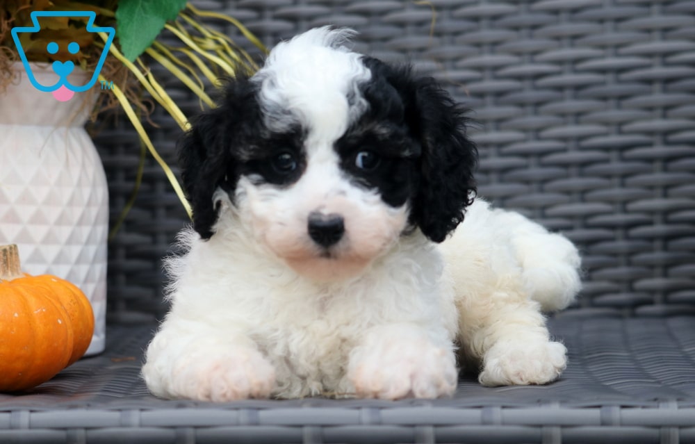 Panda the Bichpoo is a bright spark of energy in a fluffy little package. With his playful attitude and friendly nature, he’s never met a stranger—just friends he hasn’t won over yet! Panda thrives around people, especially kids, and is happiest when he’s part of the fun. This cutie is vet checked, vaccinated, wormed, plus the breeder provides a 1 year genetic health guarantee. His momma is a Bichon (Marita – 14lbs.) & daddy is a Mini Poodle (Kolby – 12lbs.). He’s a social butterfly with a soft spot for laughter and love.
