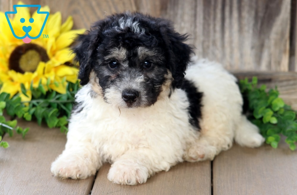 Theo is a sweet and spirited Bichpoo with a heart full of love and a tail that never stops wagging. This little social butterfly thrives on attention and adores being around people—especially kids! Theo is vet checked, vaccinated, wormed, plus the breeder provides a 1 year genetic health guarantee. His momma is a Bichon (Masey – 15lbs.) & daddy is a Poodle (Justin – 15lbs.). He’s always ready to bring a smile to your face and a little sparkle to your day.