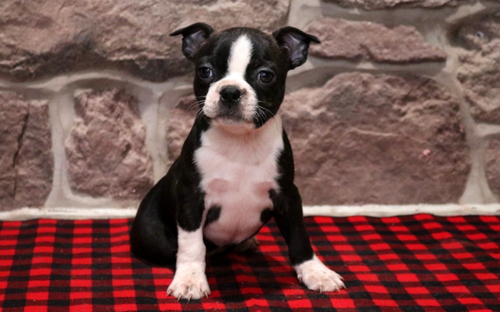 Fudge is a stunning Boston Terrier with a heart as big as her bright personality. She’s incredibly social, loves meeting new people, and thrives on attention. Fudge especially enjoys playing with kids. This sweet girl is ACA registered, vet checked, vaccinated, wormed, plus the breeder provides a 1 year genetic health guarantee. Her parents are Autumn (14lbs.) & Georgy Porgy (15lbs.). She brings joy to everyone she meets.