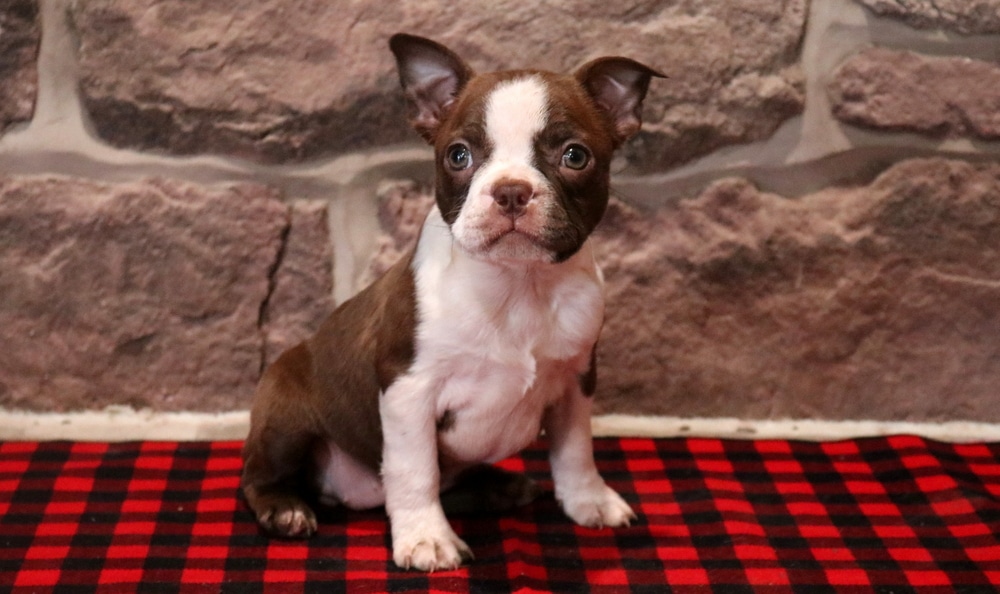 Tootsie is a stunning Boston Terrier with a heart as big as her bright personality. She’s incredibly social, loves meeting new people, and thrives on attention. Tootsie especially enjoys playing with kids. This sweet girl is ACA registered, vet checked, vaccinated, wormed, plus the breeder provides a 1 year genetic health guarantee. Her parents are Autumn (14lbs.) & Georgy Porgy (15lbs.). She brings joy to everyone she meets.