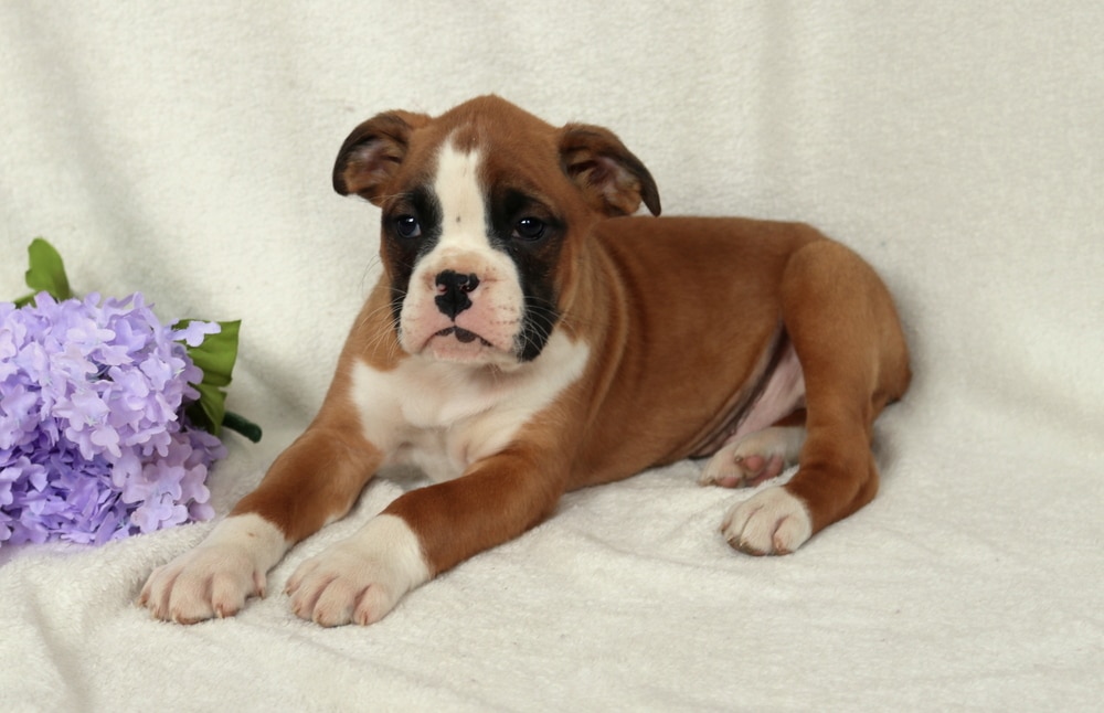 Bobby is an adorable Boxer with a big heart and an even bigger personality! This social sweetheart thrives on attention and absolutely loves being around people—especially kids. Bobby is ACA registered, vet checked, vaccinated, wormed, plus the breeder provides a 1 year genetic health guarantee. His momma is Gracie 50lbs and daddy is 60lbs. He can’t wait to bring smiles, laughter, and plenty of tail wags to his forever family!