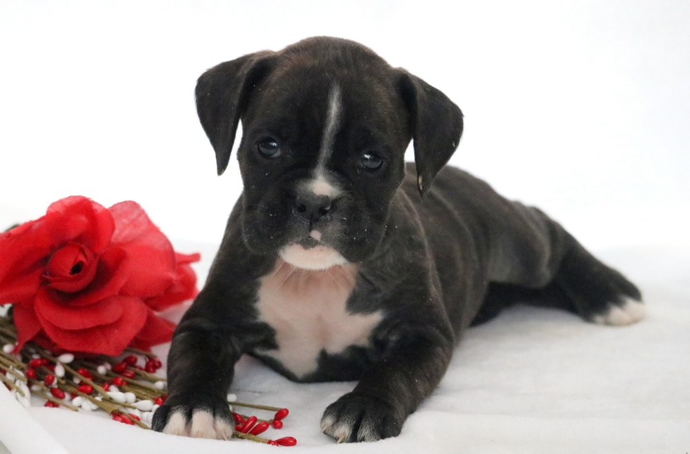 Meet Dream, an adorable Boxer puppy with a big personality and an even bigger heart! This pooch is very social and absolutely loves being around people. She’s been raised with kids, so she enjoys playtime, cuddles, and attention. This sweet girl is confident, friendly, and eager to make new friends. She is AKC registered, vet checked, vaccinated, wormed, and comes with a 1 year genetic health guarantee that is provided by the breeder. Her parents are Jolene & Jack. If you’re searching for a happy-go-lucky Boxer puppy who’s full of love and personality, Dream could be the perfect match!