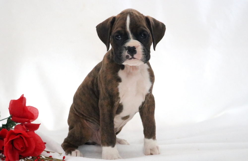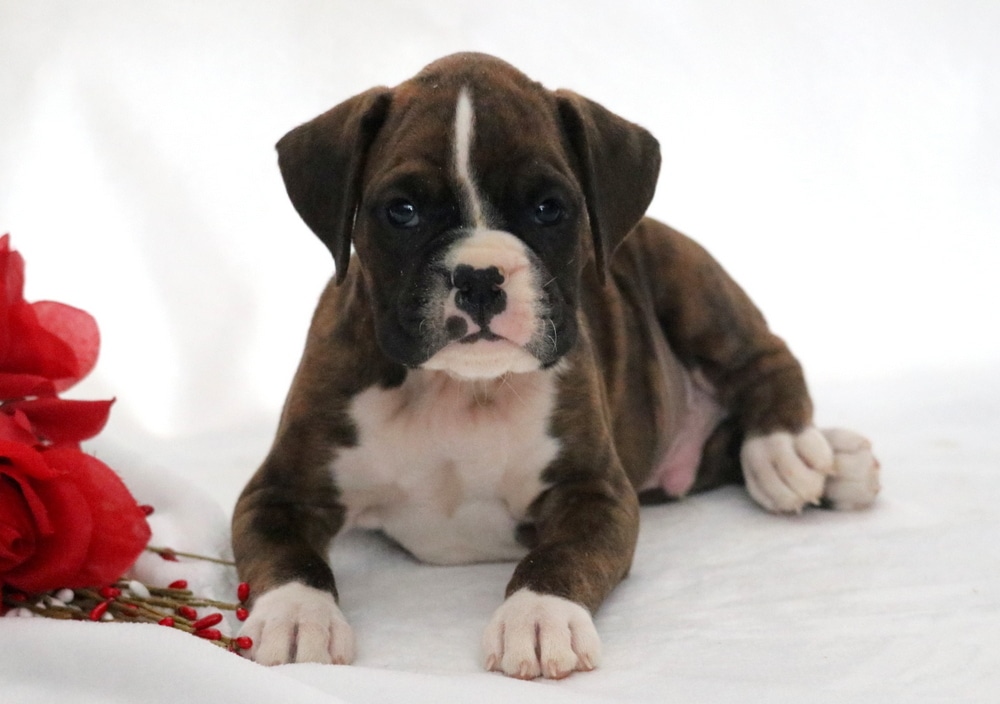 Meet Drew, an adorable Boxer puppy with a big personality and an even bigger heart! This pooch is very social and absolutely loves being around people. He’s been raised with kids, so he enjoys playtime, cuddles, and attention. This sweet boy is confident, friendly, and eager to make new friends. He is AKC registered, vet checked, vaccinated, wormed, and comes with a 1 year genetic health guarantee that is provided by the breeder. His parents are Jolene & Jack. If you’re searching for a happy-go-lucky Boxer puppy who’s full of love and personality, Drew could be the perfect match!