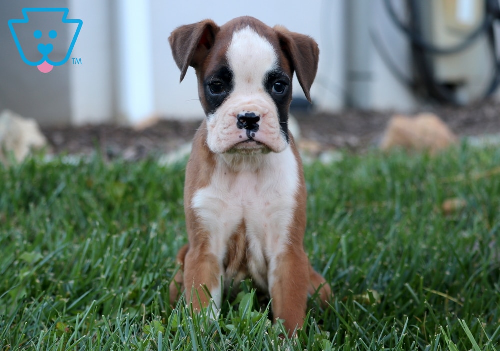 Kermit is a lively Boxer puppy with a sweet, social personality and a heart full of love! He’s been raised with children, so he’s well-socialized and loves being part of all the fun. Kermit enjoys playtime, belly rubs, and being right by your side. This boy is vet checked, vaccinated, wormed,and comes with a 1 year genetic health guarantee. His parents are Dakota (55lbs) & Goliath (60lbs). With his friendly spirit and gentle nature, this adorable boy will make a wonderful companion and a loyal best friend for any family!
