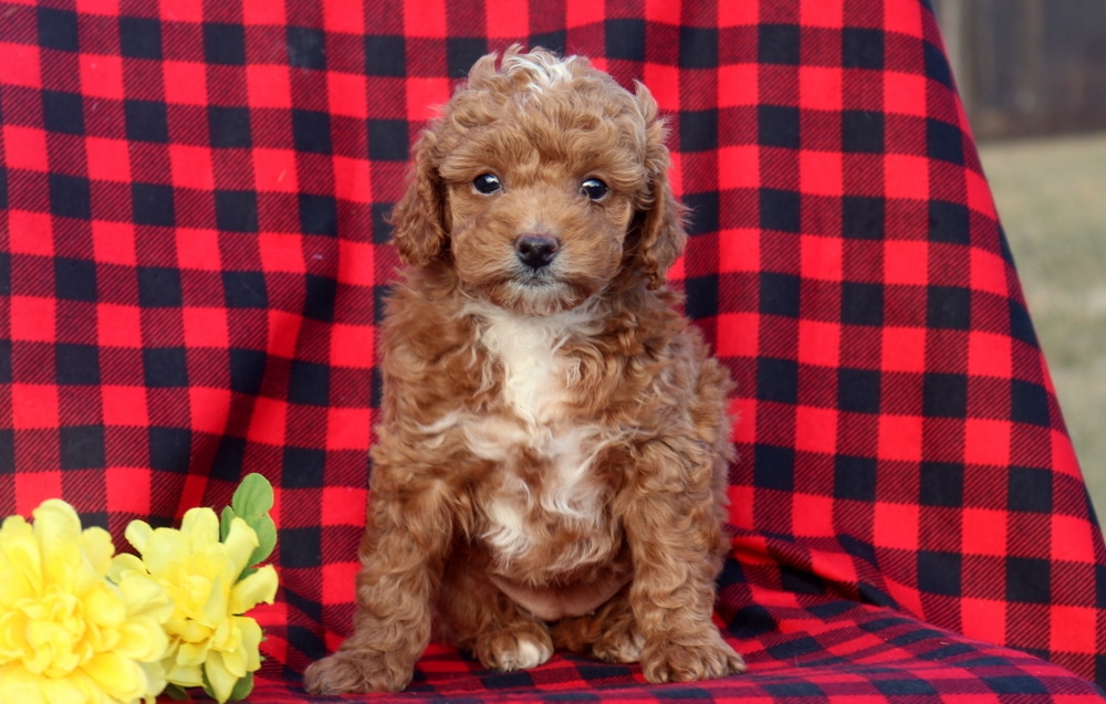 Lola is a sweet Mini Goldendoodle who loves everyone she meets. Social, playful, and great with kids, she’s always ready to share affection and fun. She is vet checked, vaccinated, wormed, plus the breeder provides a 1 year genetic health guarantee. Her momma is a Mini Goldendoodle (Beauty – 28lbs.) & daddy is a Mini Poodle (Cheif – 15lbs.). Lola’s gentle, friendly nature makes her a perfect companion for families.