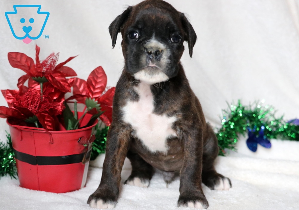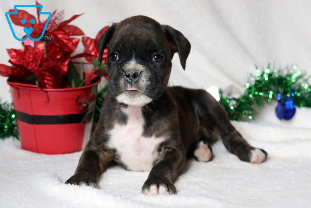 This sweet, social Boxer who loves nothing more than being part of the family fun is Scar. He has a playful energy that makes him a natural companion for kids. Scar is AKC registered, vet checked, vaccinated, wormed, plus the breeder provides a 1 year genetic health guarantee. His parents are Destiny & Jack. With his charming personality and big Boxer heart, he’s the perfect addition to a loving home.