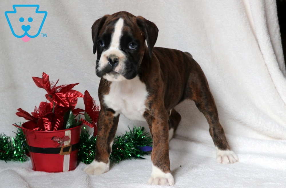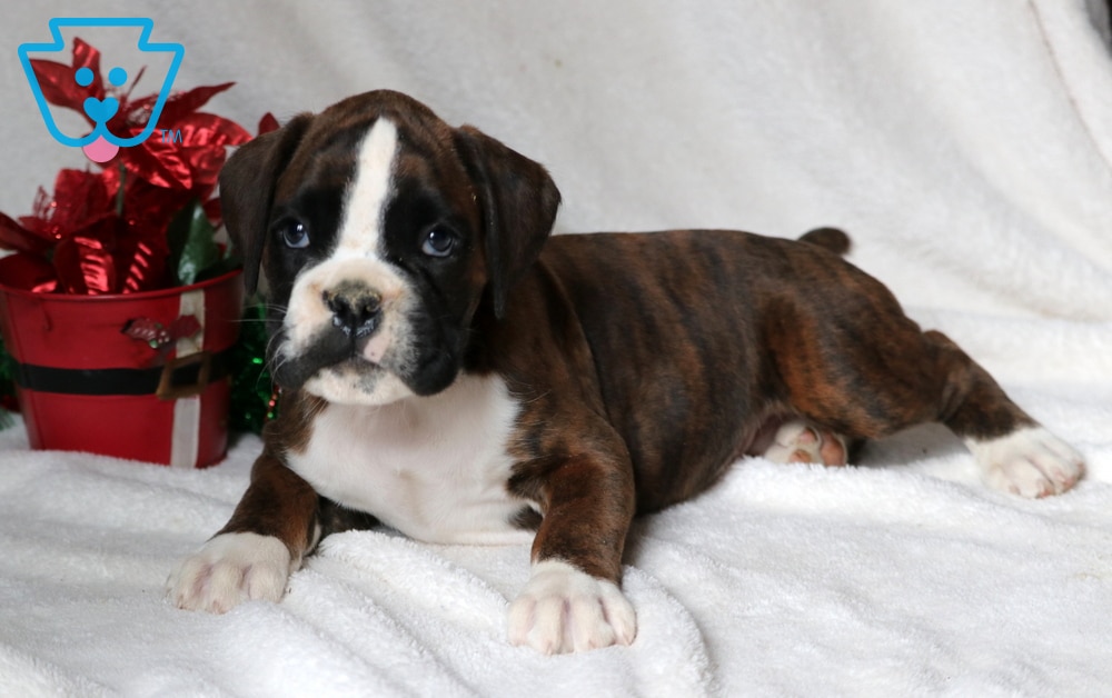 This sweet, social Boxer who loves nothing more than being part of the family fun is Scooby. He has a playful energy that makes him a natural companion for kids. Scooby is AKC registered, vet checked, vaccinated, wormed, plus the breeder provides a 1 year genetic health guarantee. His parents are Destiny & Jack. With his charming personality and big Boxer heart, he’s the perfect addition to a loving home.