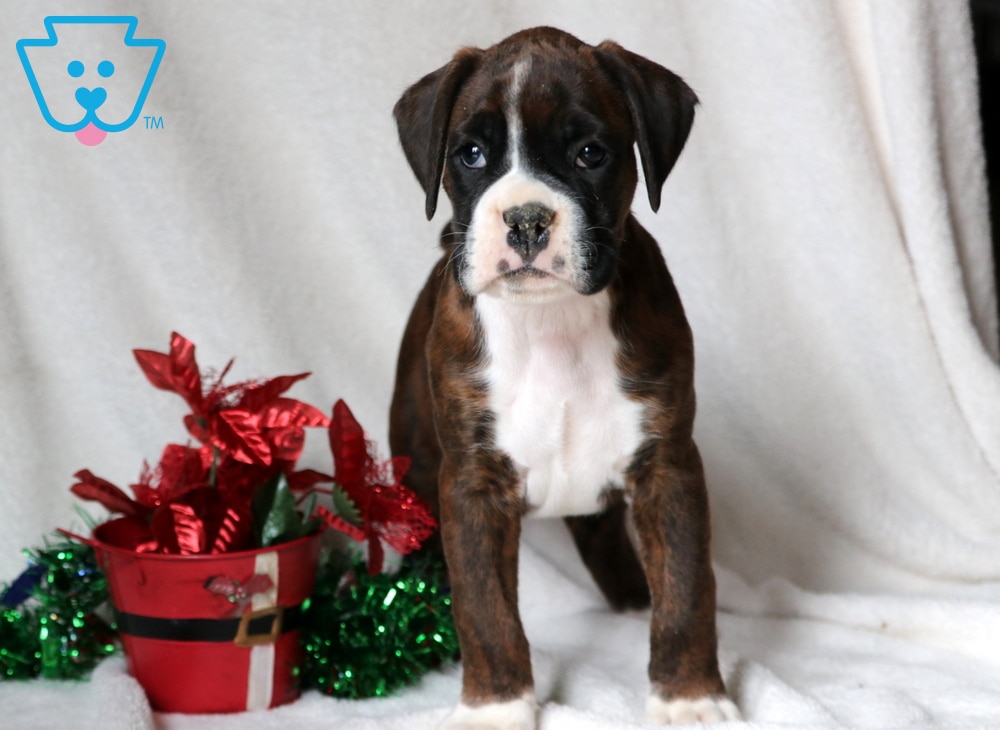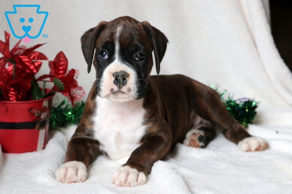 This sweet, social Boxer who loves nothing more than being part of the family fun is Swift. He has a playful energy that makes him a natural companion for kids. Swift is AKC registered, vet checked, vaccinated, wormed, plus the breeder provides a 1 year genetic health guarantee. His parents are Destiny & Jack. With his charming personality and big Boxer heart, he’s the perfect addition to a loving home.