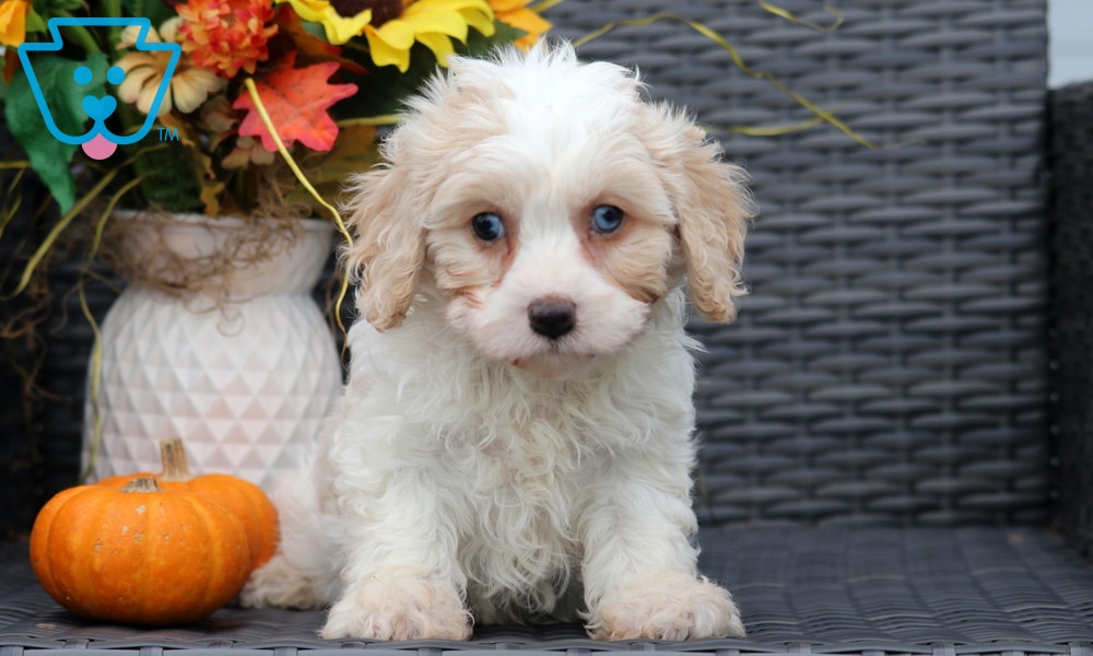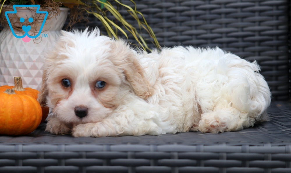 Bridgett is a sweet and affectionate Cavachon with a heart as big as her puppy-dog eyes. She’s incredibly social and loves being around people—especially children, who she happily plays with for hours. Bridgett is vet checked, vaccinated, wormed, plus the breeder provides a 1 year genetic health guarantee. Her momma is a Bichon (Tweety – 14lbs.) & daddy is a Blue Merle Cavalier (Ringo – 13lbs.). Gentle, playful, and full of love, she’s the kind of companion who makes every day brighter.