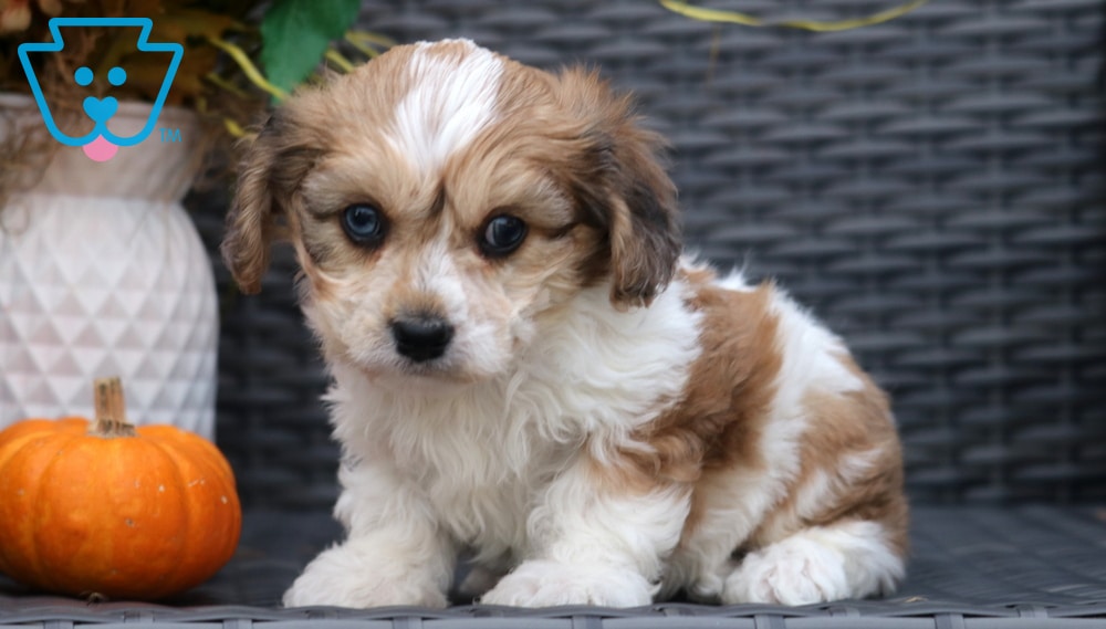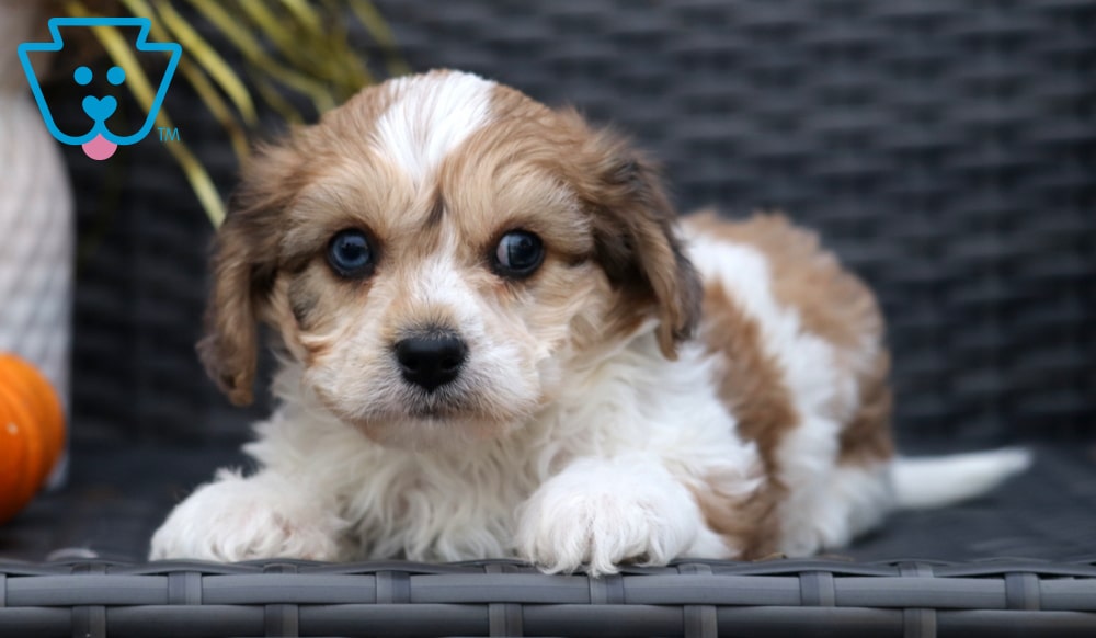 Kyle is the definition of friendly. This cheerful Cavachon loves nothing more than being surrounded by people—especially kids! This lovely pup is vet checked, vaccinated, wormed, plus the breeder provides a 1 year genetic health guarantee. His momma is a Bichon (Tootsie – 17lbs.) & daddy is a Blue Merle Cavalier (Ringo – 13lbs.). Kyle’s a social sweetheart who brings warmth and wagging tails wherever he goes.