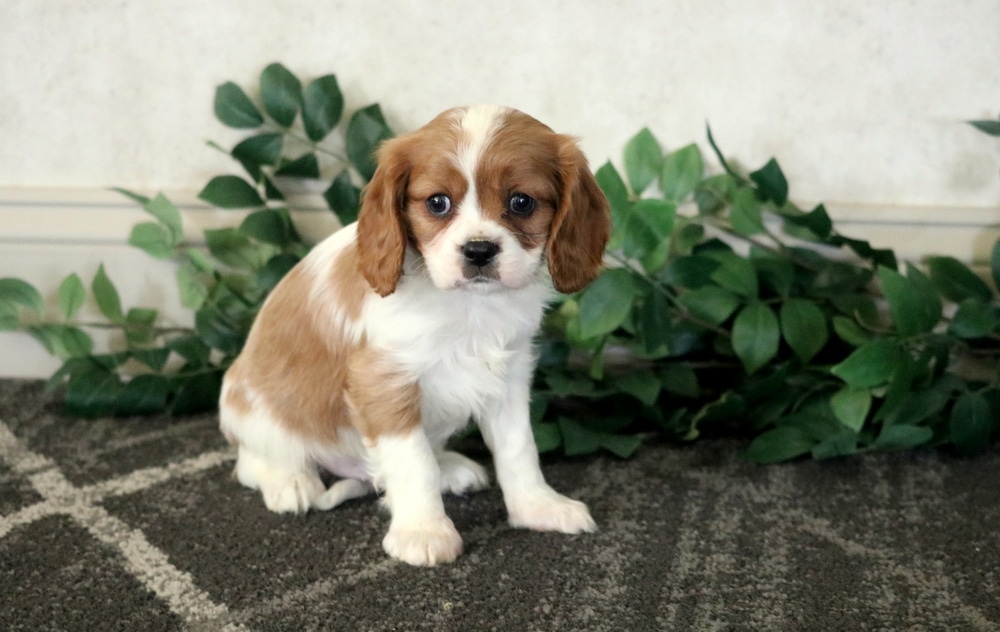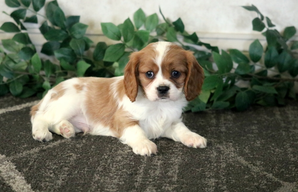 Chase is a gorgeous Cavalier King Charles Spaniel with a warm, welcoming presence that instantly brightens any room. Known for his incredibly social nature, he has a natural gift for connecting with people. He is AKC registered, vet checked, vaccinated, wormed, plus the breeder provides a 1 year genetic health guarantee. His parents are Sophie (16lbs.) & Axel (12lbs.). Chase’s elegance, confidence, and genuine love for meeting new people make him truly unforgettable.