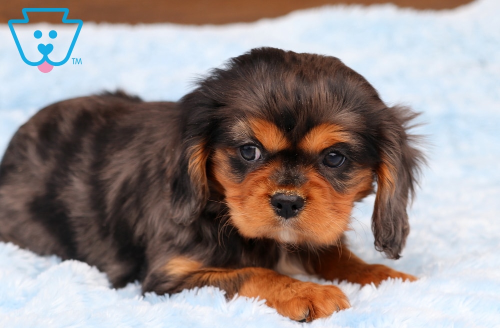 Meet Cheerio, a gorgeous Cavalier with a heart as bright as his expressive eyes. He’s always eager to greet guests, make new friends, and soak up all the affection he can get. Children are his absolute delight, and he happily joins in their games. This cutie is AKC registered, vet checked, vaccinated, wormed & health guaranteed by the breeder. His parents are Brianne Lynn (18lbs.) & Kooper (13lbs.). Cheerio brings warmth and charm wherever he goes.