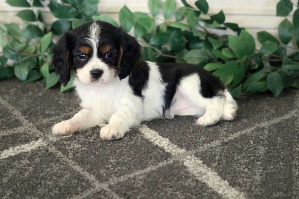 Cookie is a gorgeous Cavalier King Charles Spaniel with a warm, welcoming presence that instantly brightens any room. Known for her incredibly social nature, she has a natural gift for connecting with people. She is AKC registered, vet checked, vaccinated, wormed, plus the breeder provides a 1 year genetic health guarantee. Her parents are Sophie (16lbs.) & Axel (12lbs.). Cookie’s elegance, confidence, and genuine love for meeting new people make her truly unforgettable.