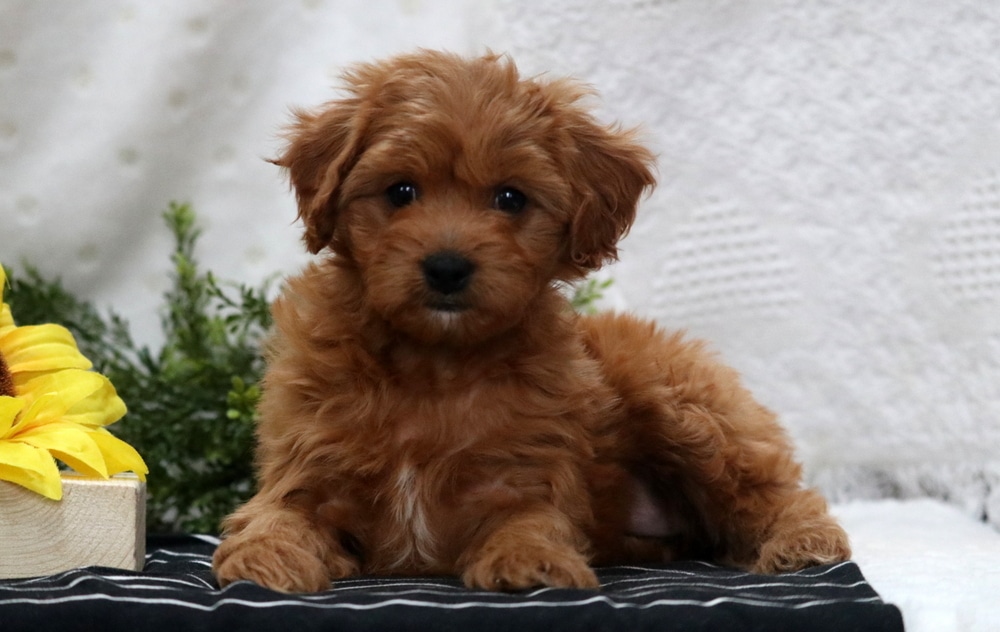Mckenzie is a lovable Poodle Mix with a heart full of affection and a personality that shines. She’s as social as can be, making friends wherever she goes, and has a special knack for bringing joy to children. This little girl is vet checked, vaccinated, wormed, plus the breeder provides a 1 year genetic health guarantee. Her momma is a Cavalier/ Shiba Inu Mix (Trixie – 13lbs.) & daddy is a Red Poodle (Skyler – 13lbs.). Mckenzie is the perfect companion for families seeking a fun-loving, gentle, and devoted furry friend.