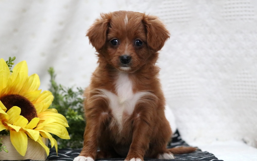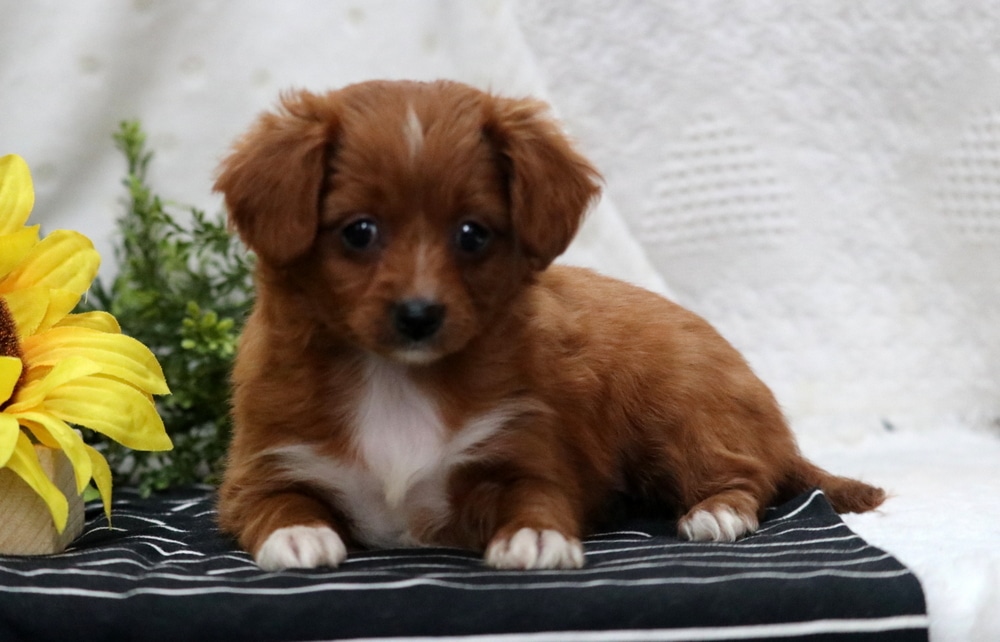 Missy is a lovable Poodle Mix with a heart full of affection and a personality that shines. She’s as social as can be, making friends wherever she goes, and has a special knack for bringing joy to children. This little girl is vet checked, vaccinated, wormed, plus the breeder provides a 1 year genetic health guarantee. Her momma is a Cavalier/ Shiba Inu Mix (Trixie – 13lbs.) & daddy is a Red Poodle (Skyler – 13lbs.). Missy is the perfect companion for families seeking a fun-loving, gentle, and devoted furry friend.
