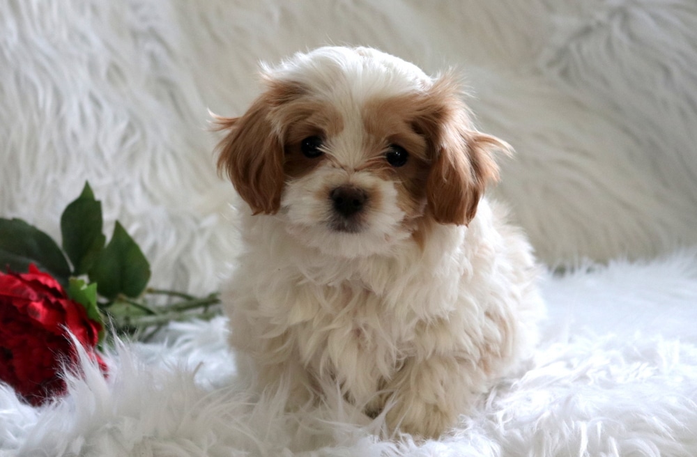 Paws is an adorable Poodle Mix puppy with a loving personality and a heart full of cuddles! He has been raised with children, so he’s confident, playful, and very well socialized. This pooch is vet checked, vaccinated, wormed, and comes with a 1 year genetic health guarantee that is provided by the breeder. His parents are Charm (Cavapoo – 11lbs) & Snuffy (Maltese – 8lbs). Paws would make a wonderful companion for a family or anyone looking for a friendly, well-adjusted puppy to love and spoil.