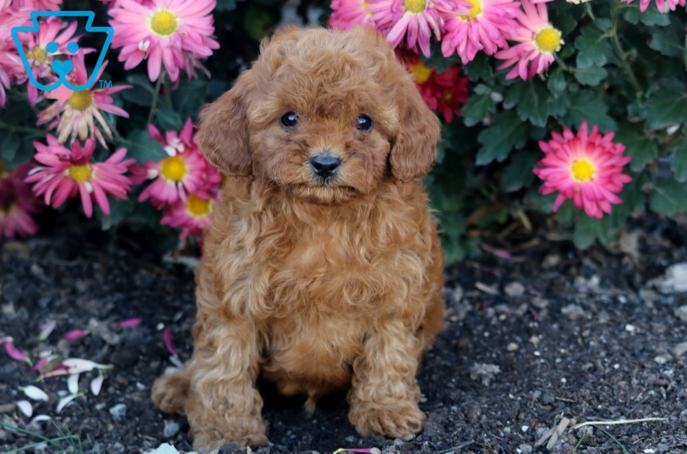 Hunter is a sweet and affectionate Cavapoo — he’s pure sunshine in a fluffy coat! This little social butterfly loves making new friends wherever he goes. He’s especially great with kids, always ready for a game of fetch, a cuddle session, or a joyful romp in the yard. Hunter is vet checked, vaccinated, wormed, plus the breeder provides a 1 year genetic health guarantee. His momma is a Cavapoo (Roxy – 11lbs.) & daddy is a Mini Poodle (Sparkles – 11lbs.). This cutie brings warmth and happiness to everyone he meets.