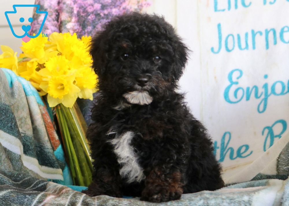 Meet Archie, your new best friend! He is an adorable Cavapoo puppy with a heart as big as his fluffy curls! This sweet boy is incredibly social and absolutely loves being around people. He is vet checked, vaccinated, wormed, and comes with a 1 year genetic health guarantee that is provided by the breeder. His momma is Pansy (Cavapoo – 12lbs) & daddy is a Mini Poodle (14lbs). If you’re looking for a playful, affectionate puppy who’s already off to a great start socially, Archie might just be the one you’ve been waiting for!