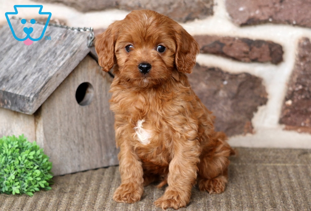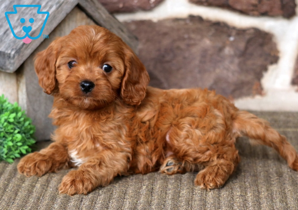 Aspen is an outgoing Cavapoo puppy with a cheerful spirit and a big heart! He’s been raised with children, making him social, confident, and ready to bring fun and affection to his forever family. This pup has been vet checked, vaccinated, wormed, and comes with a 1-year genetic health guarantee provided by the breeder. His momma is Kathy (Mini Poodle – 11lbs) and daddy is Bleu Marshall (Blue Merle Cavalier – 17lbs). If you’re looking for a happy, family-friendly Cavapoo pup who will fill your home with joy, Aspen is the perfect match!