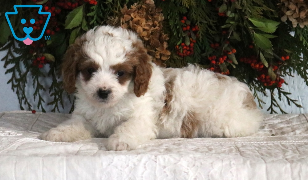 Meet Austin, a gorgeous Cavapoo with a soft coat and an even softer heart. He is vet checked, vaccinated, wormed, plus the breeder provides a 1 year genetic health guarantee. His momma is a Cavapoo (Kenzy – 18lbs.) & daddy is a Mini Poodle (20lbs.). When Austin’s sweet personality shines through, he becomes a loving, loyal companion who enjoys quiet moments and cozy company.