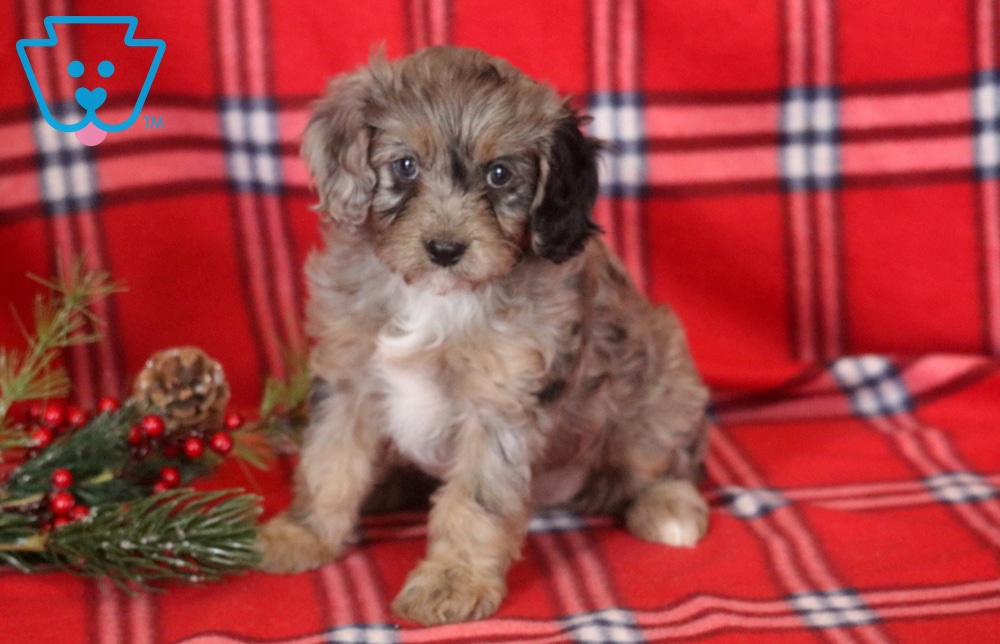 Meet Ava, a loving Cavapoo with a bright and happy personality. A true social butterfly, she adores being around people and absolutely loves playing with kids. This cutie is vet checked, vaccinated, wormed, plus the breeder provides a 2 year genetic health guarantee. Her momma is a Cavalier (Gracie – 16lbs.) & daddy is a Toy Poodle (Diamond – 7lbs.). Ava’s affectionate temperament and cheerful nature make her the perfect addition to a family home.