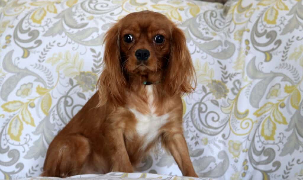 Meet Ava, a gorgeous Cavapoo with a bright, happy personality! She is super social and absolutely loves playing with children. This lovely gal is vet checked, vaccinated, wormed, plus the breeder provides a 2 year genetic health guarantee. Her momma is a Cavalier (Glory – 15lbs.) & daddy is a Mini Poodle (Rusty – 14lbs.). Ava makes a wonderful family companion and is sure to bring endless smiles and joy to her forever home.