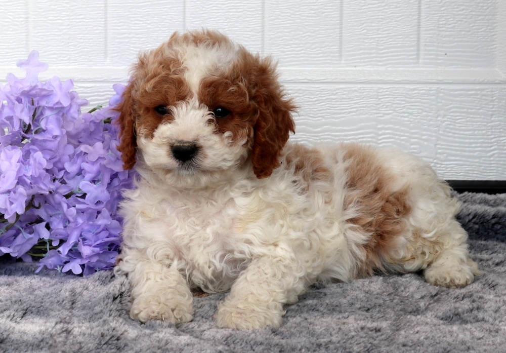 Bee is a darling Cavapoo puppy with the softest curls and the happiest little personality! She’s a social sweetheart who absolutely thrives on attention and interaction. She is vet checked, vaccinated, wormed, and comes with a 1 year genetic health guarantee that is provided by the breeder. Her parents are Fancy (Cavapoo – 15lbs) & Colten (Mini Poodle – 20lbs). If you’re looking for a Cavapoo puppy who has been socialized with kids and is prepared to step right into family life, Bee is ready to steal your heart!