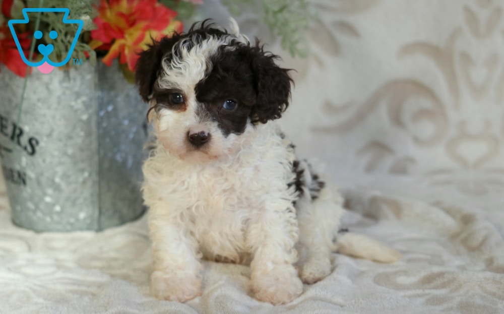 Chase is a stunning 2nd generation Cavapoo with a heart as big as his playful spirit. This cutie is incredibly social and his favorite moments are spent playing with kids. He is vet checked, vaccinated, wormed, plus the breeder provides a 1 year genetic health guarantee. His momma is a Cavapoo (Peach – 14lbs.) & daddy is a Black and Brown Mini Poodle (Kolby – 10lbs.). Chase brings warmth, joy, and a whole lot of charm to every day.