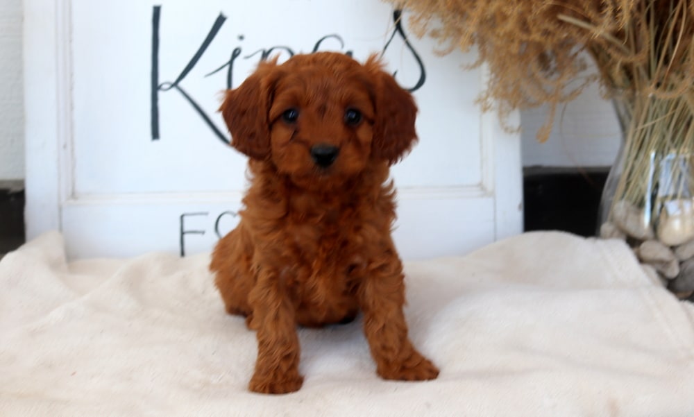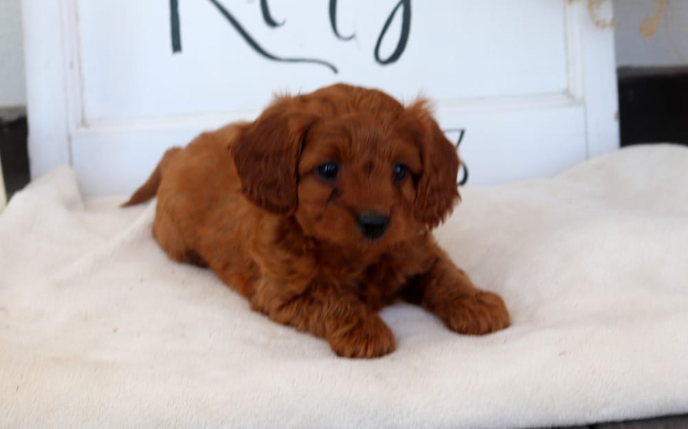 Cindy Lou is a sweet and loving Cavapoo with a heart full of joy. She’s incredibly social and especially enjoys spending time with kids. This little girl is vet checked, vaccinated, wormed, plus the breeder provides a 1 year genetic health guarantee. Her momma is a Cavapoo (Nellie – 16.5lbs.) & daddy is a Mini Poodle (Blazer – 12lbs.). Cindy Lou brings smiles and laughter wherever she goes.