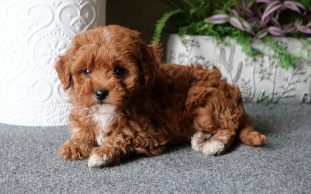The Cavapoo is a delightful mix of the Cavalier King Charles Spaniel and Mini Poodle. These low-shedding, affectionate dogs boast a sweet, round face and floppy ears, making them ideal family companions. Known for their friendly temperament and easy trainability, Cavapoos thrive on moderate exercise and plenty of love. Their soft, curly coat requires minimal maintenance, perfect for a busy household seeking a lovable, low-key lapdog.