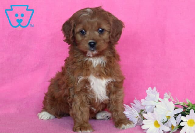 Desi is a spunky Cavapoo ready to meet her new best friend. This sweet pup is sure to be the center of attention everywhere she goes. Desi is super social and enjoys playing with the children she is currently being raised with. Her momma is a Cavalier King Charles Spaniel (Tammy – 18lbs.) & daddy is a Mini Poodle (Rodger – 13lbs.). She is vet checked, vaccinated, wormed, plus the breeder provides a 1 year genetic health guarantee. Call today to discuss making her yours!!