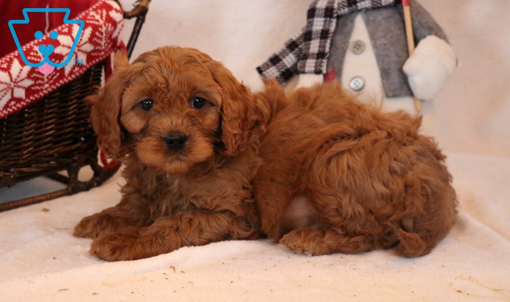 Say hello to Flex, a joyful Cavapoo with a loving and playful personality. Social as can be, he delights in spending time with people and especially enjoys playing with kids. This cutie is vet checked, vaccinated, wormed, plus the breeder provides a 1 year genetic health guarantee. His momma is a Cavalier (Madison – 25lbs.) & daddy is a Mini Poodle (Bennie – 15lbs.). Flex is the perfect addition to any family.