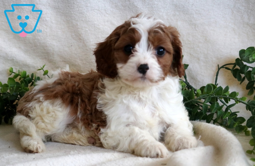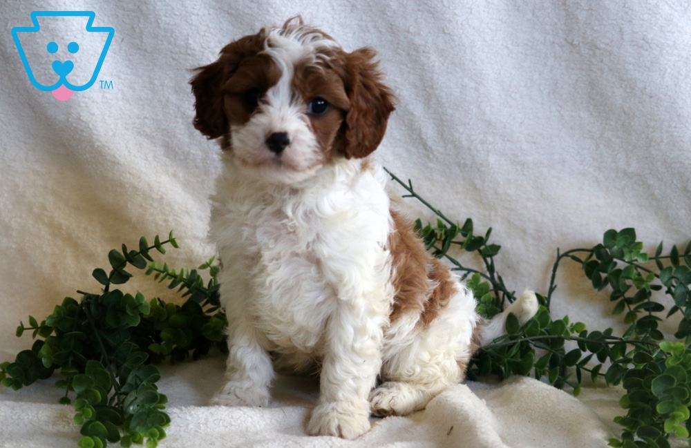 Meet Hudson, a precious Cavapoo with the sweetest personality. Social as can be, he loves being around people and quickly makes friends wherever he goes. This little lad is vet checked, vaccinated, wormed, plus the breeder provides a 1 year genetic health guarantee. His momma is a Cavalier (Kaitlyn – 18lbs.) & daddy is a Mini Poodle (16lbs.). Hudson brings happiness to every moment.