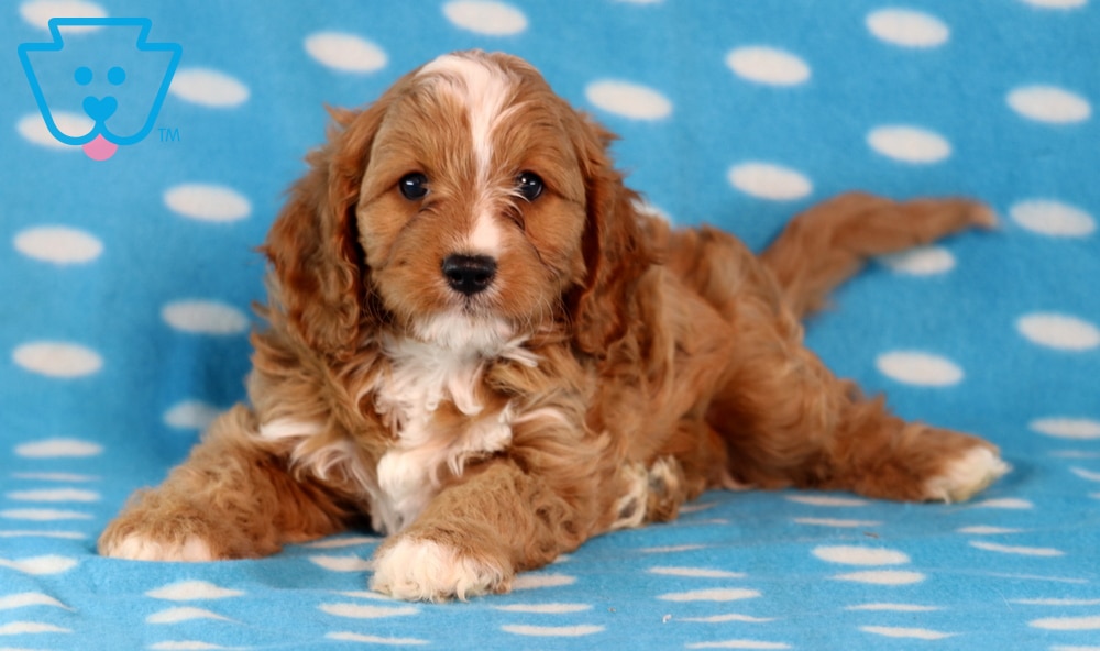 Ike is a super social Cavapoo with an irresistible charm and a heart full of energy. Playtime is his favorite time — especially when it involves children. He’s gentle, patient, and endlessly playful. This sweet pooch is vet checked, vaccinated, wormed, plus the breeder provides a 2 year genetic health guarantee. His momma is a Cavalier (Briscutt – 18lbs.) & daddy is a Mini Poodle (Rusty – 13lbs.). Ike is the perfect companion for families who love fun, friendship, and furry hugs.