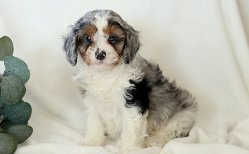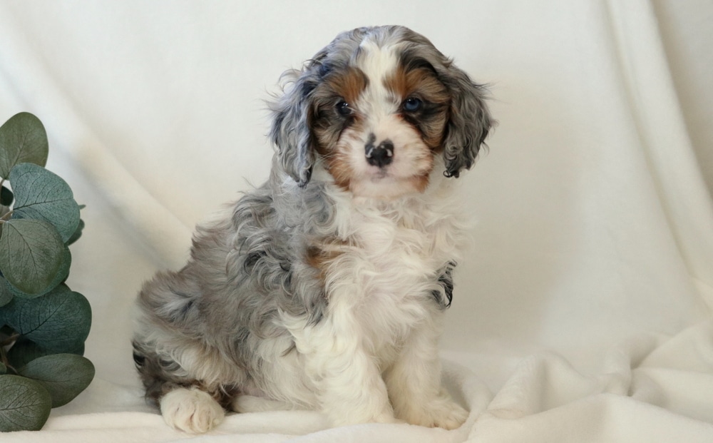 Kendrick is a loving Cavapoo with the sweetest personality! He is social as can be and absolutely loves playing with kids, making him a wonderful companion for families of all sizes. Kendrick is vet checked, vaccinated, wormed, plus the breeder provides a 1 year genetic health guarantee. His momma is a Cavalier (Ava – 25lbs.) & daddy is a Mini Poodle (Johny – 14lbs.). He is sure to fill his forever home with happiness and love.
