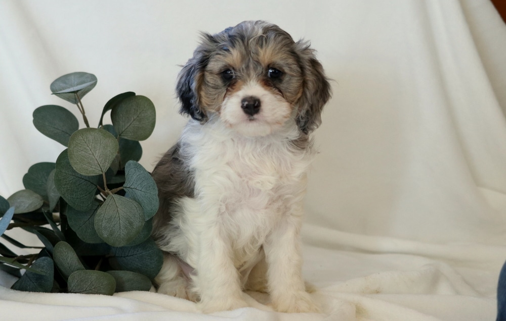 Kira is a loving Cavapoo with the sweetest personality! She is social as can be and absolutely loves playing with kids, making her a wonderful companion for families of all sizes. Kira is vet checked, vaccinated, wormed, plus the breeder provides a 1 year genetic health guarantee. Her momma is a Cavalier (Ava – 25lbs.) & daddy is a Mini Poodle (Johny – 14lbs.). She is sure to fill her forever home with happiness and love.