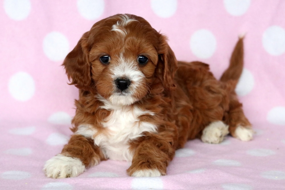 Love is an adorable Cavapoo puppy with a sweet, social personality that wins hearts instantly. She has been lovingly raised around children, making her a wonderful fit for a home looking for a playful and affectionate companion. She is vet checked, vaccinated, wormed, and comes with a 1 year genetic health guarantee that is provided by the breeder. Her parents are Lucy (Cavalier – 15lbs) & Rodger (Mini Poodle – 15lbs). Love is ready to bring joy, cuddles, and endless smiles to her forever home!