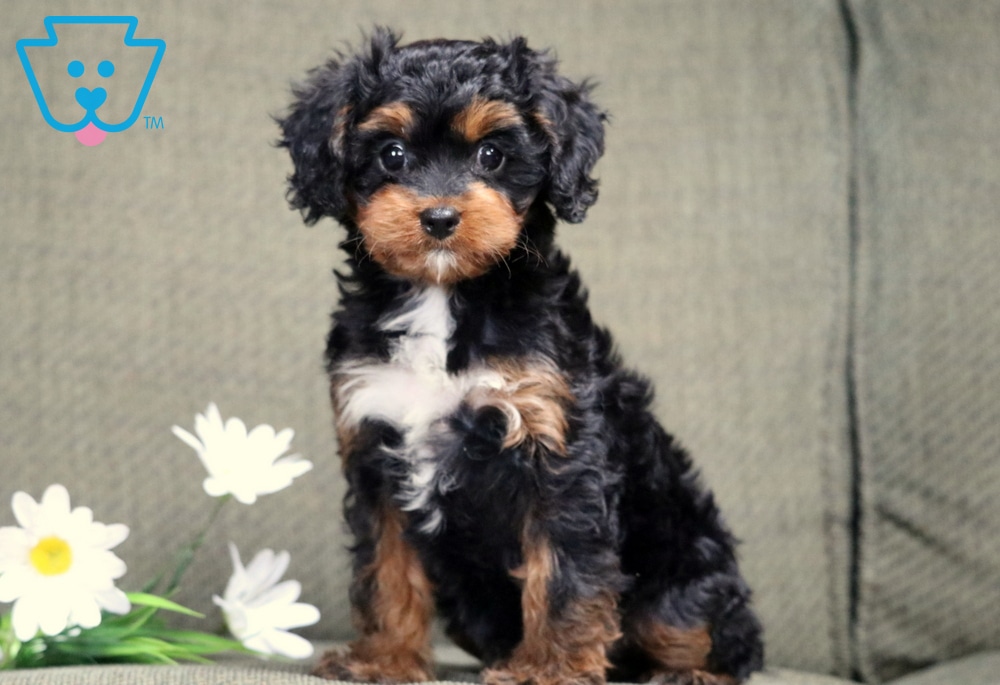 Lovey is an irresistibly cute Cavapoo with a big personality packed into a small, fluffy body. She’s incredibly social and loves being around people, especially kids. This cutie is vet checked, vaccinated, wormed, plus the breeder provides a 2 year genetic health guarantee. Her momma is a Cavalier (April – 12lbs.) & daddy is a Mini Poodle (Teddy – 11lbs.). Lovey truly brings joy and laughter wherever she goes!
